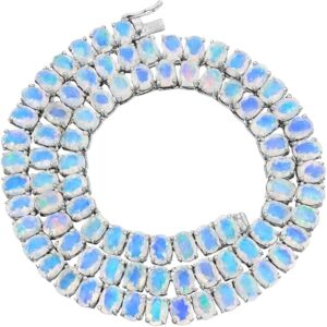 - Natural Ethiopian Opal 7x5mm Oval Cut Tennis Necklace for Women in 925 Sterling Silver