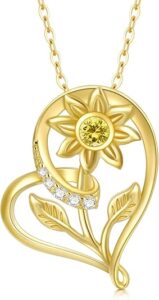 - 14k Gold Sunflower Heart Necklace for Women,”You are my sunshine”